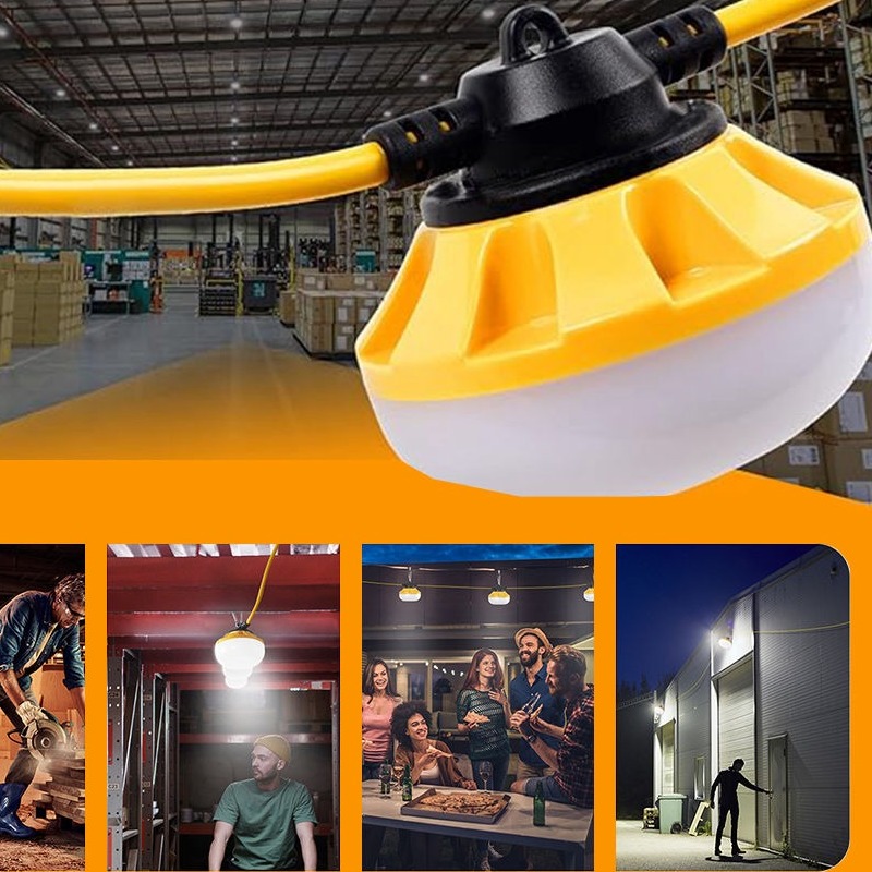 Featuring commercial-grade SJTW 18 AWG/2C yellow wire, these lights are designed to withstand the rigors of construction, offering reliable performance in challenging conditions.