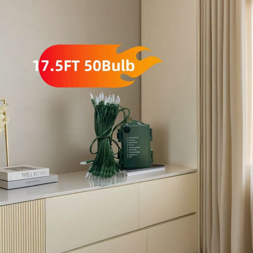 1 PCS 17.5FT(5.4M) battery powered with Mini 50pcs bulbs. Mimi Christmas string light used both outdoor&indoor.