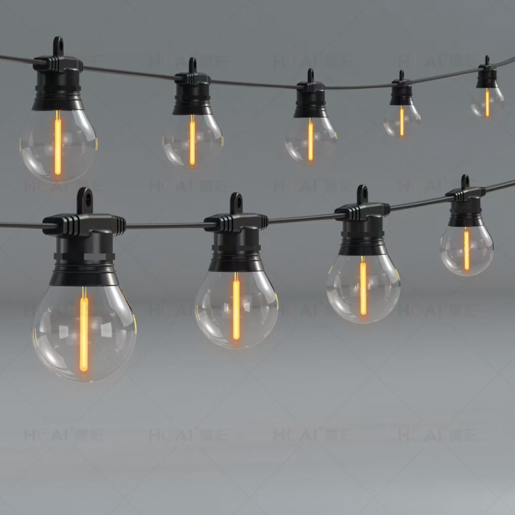 DC24V 6W adapter output, total length 50FT, XTW 20AWG/2C wire with 20 PCS G45 waterproof socket with bulb,steady on, 2700K add 2 spare bulb